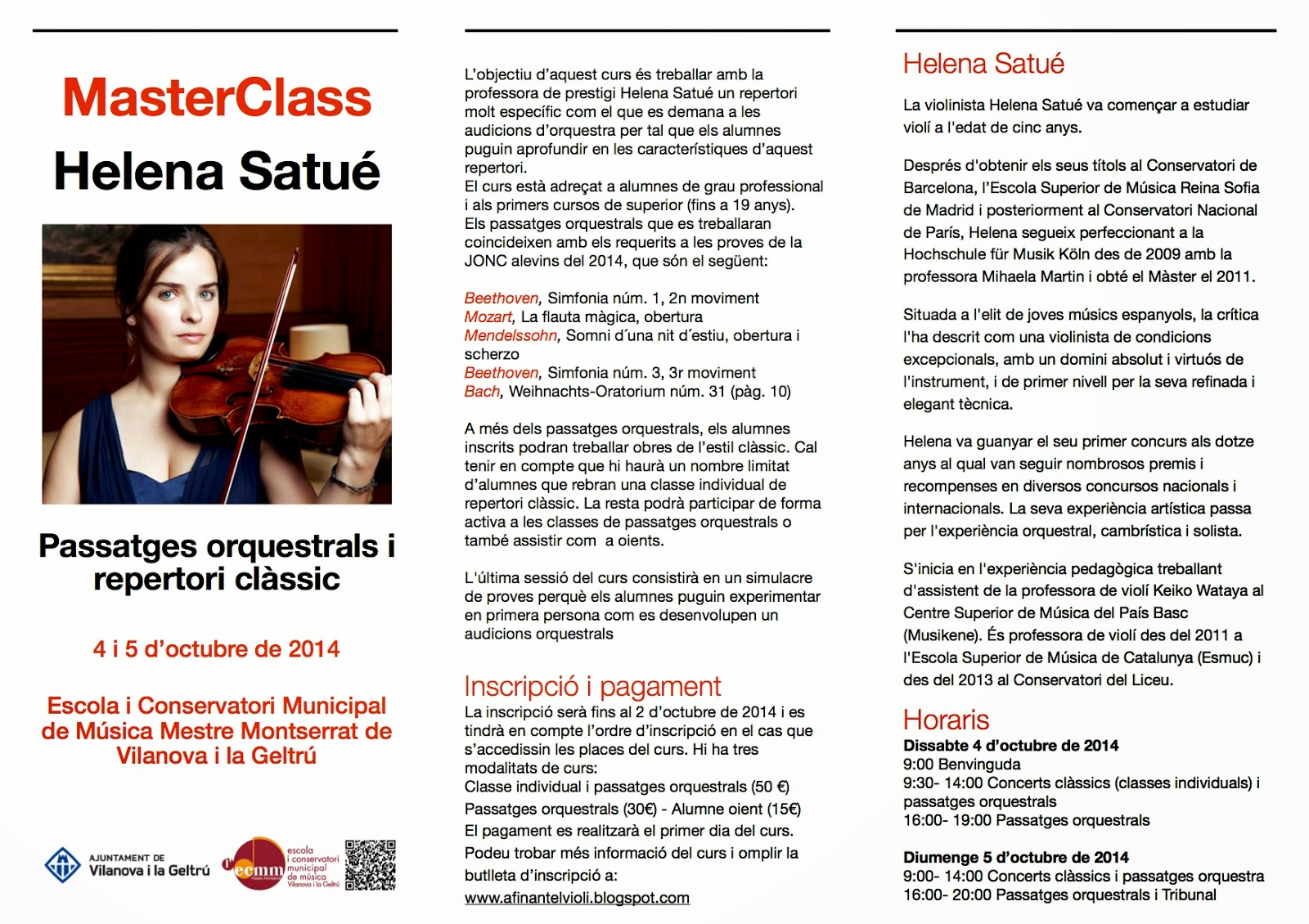 Passatges orquestrals i repertori clàssic4 i 5 d'octubre del 2014Conservatori Municipal Mestre Montserrat de Vilanova i la Geltrú.