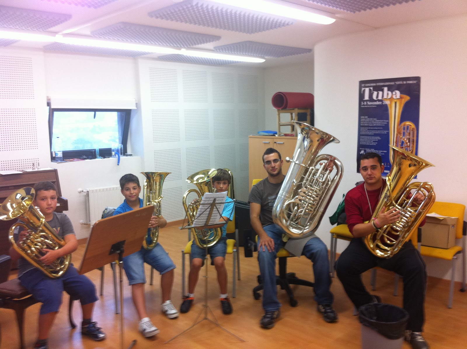 Pero poco a poco, con tesón y trabajo, la clase de tuba del Conservatorio de Gijón ha ido tomando la entidad que a mi juicio merece cualquier instrumento que se enseña en un Conservatorio. Ahora, con 13 alumnos de tuba y bombardino, hemos podido formar el Ensemble de Tubas y Bombardinos del conservatorio, y participar en cuantos eventos musicales se organizan en el centro, lo cual hace que los alumnos, del nivel que sea, puedan disfrutar de la música en grupo, y a la vez podamos demostrar todas las capacidades de este fantástico instrumento.