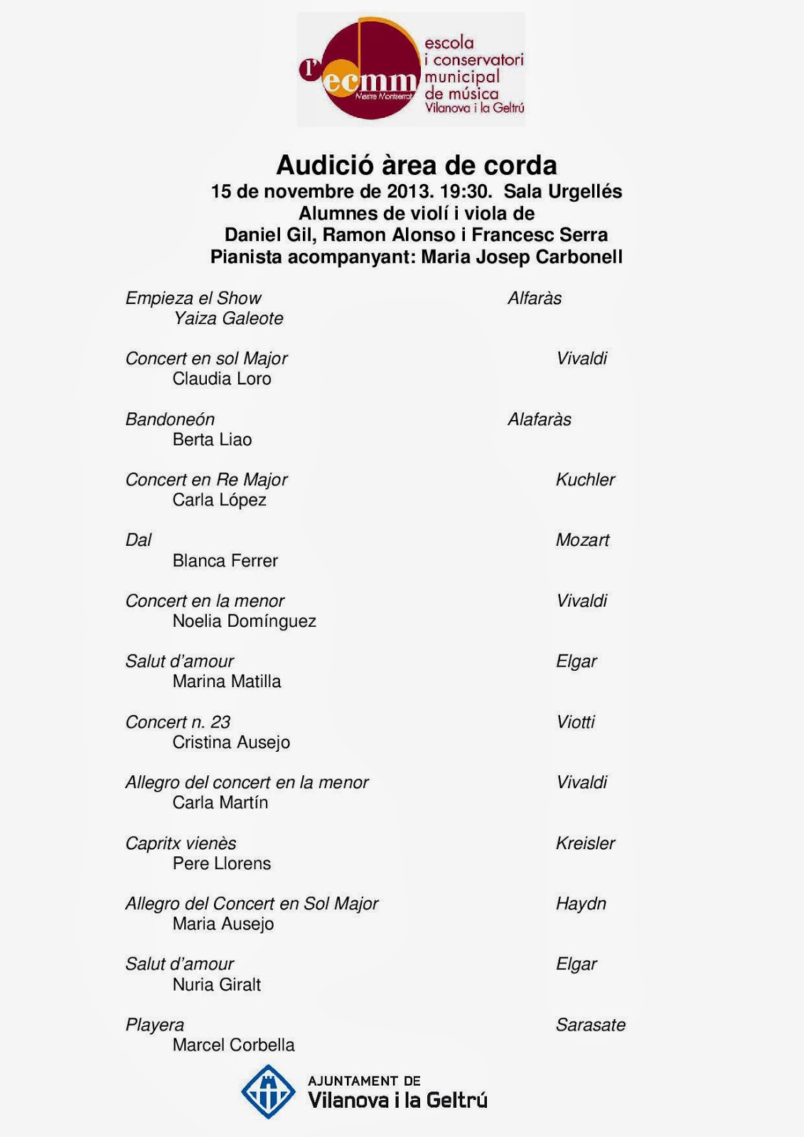 Tinc el goig de presentar-vos la segona Masterclass que organitzo a l'ECMM Vilanova i la Geltrú. Es tracta de la que farà la Rosa Camps, flautista manresana que actualment viu a Alemanya, el proper 22 de desembre.Aquesta masterclass està orientada a alumnes de Grau Professional, de Grau Mig, Superior i adults.Hi haurà una sessió de treball col·lectiu tècnic amb una… Sin categoría